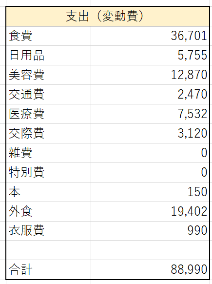 3月実績は、88,990円 先月と比較すると若干支出は増加した結果となりました。 主な増加要因は食費が増加。これはふるさと納税で間に合わなかったお米を購入したのと、間食の支出も若干増加しました。 また、花粉症シーズンが始まり市販薬の購入と大量のティッシュペーパーを購入したことにより、日用品の金額も増加しています。
